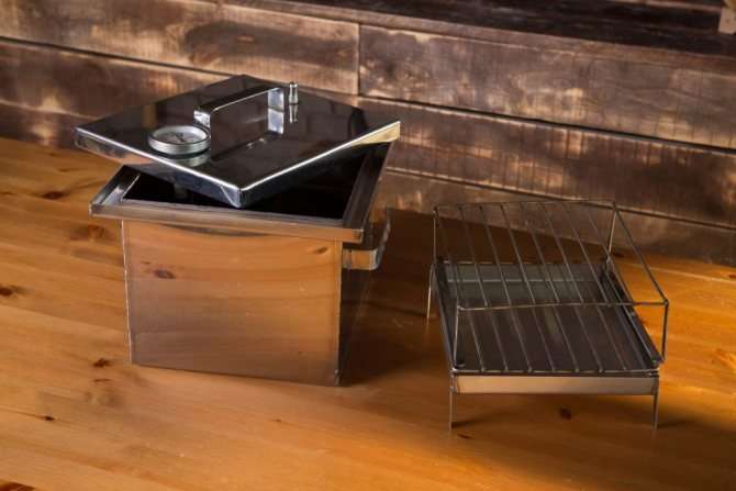 Для многих аппарат для копчения представляется как некоторый мощный агрегат, занимающий много места, и установить схожую «штуковину» не представляется вероятным даже на приусадебном участке.
