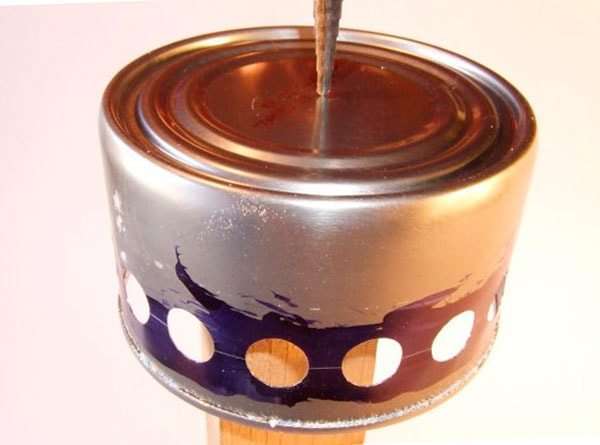 Более обычным вариантом походной печки выступает ее изготовка из обыкновенной жестянки. Так, начальным материалом выступает рядовая банка из-под товаров питания, в какой по всему периметру проделываются маленькие дыры для обеспечения соответствующей циркуляции воздуха. Готовая конструкция маленьких размеров прекрасно подходит для 1-го человека, на ней комфортно с помощью сухого горючего либо пригоршни щепы подогревать кружку с водой, чаем. Достоинства таковой конструкции:
