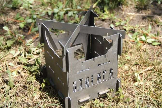 Эта печь-щепочница тоже раскладная, но собирается «гармошкой», а не делится на отдельные части. Отличается от предшествующей трапециевидной формой.